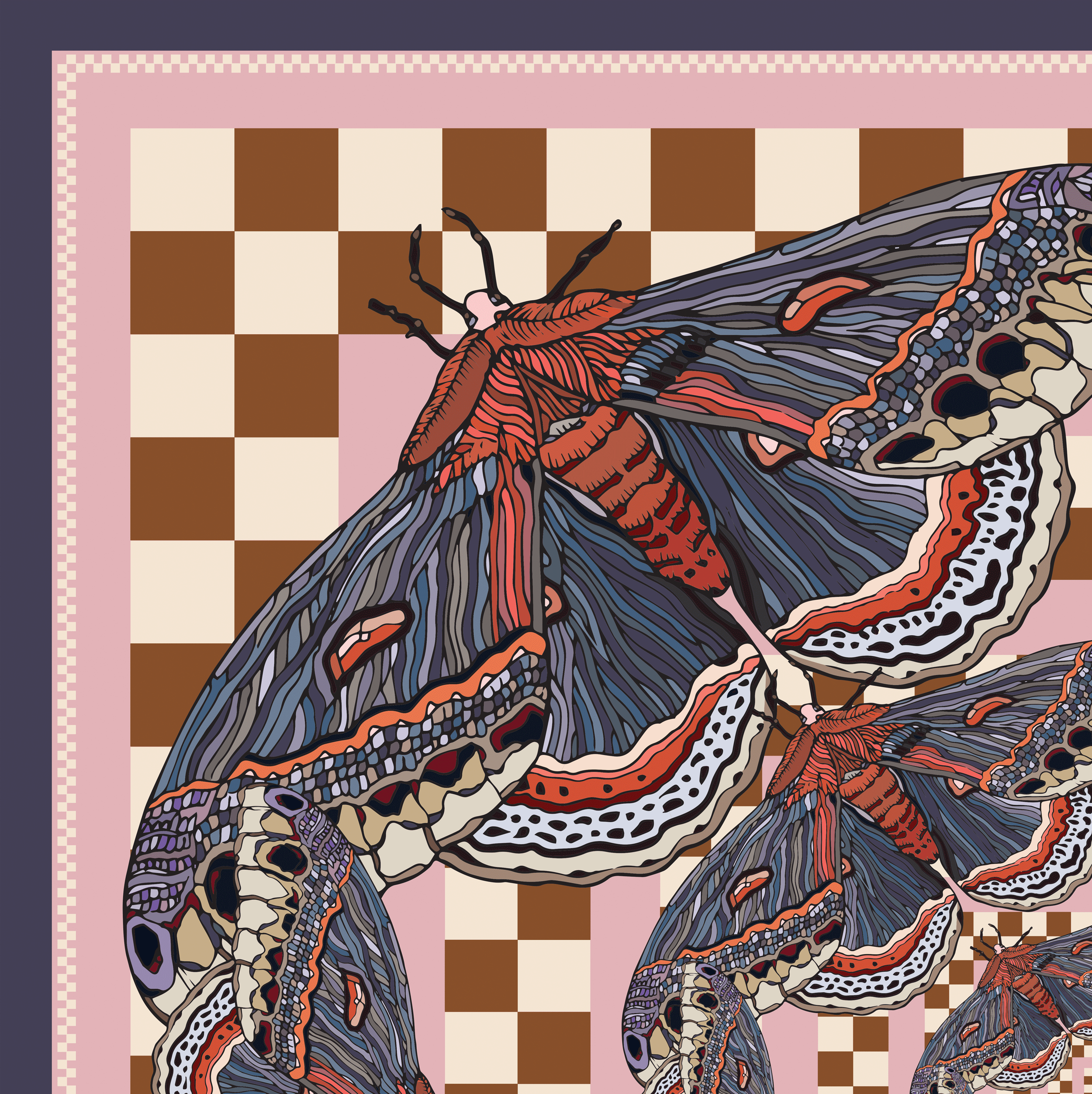 Moth Chequerboard Pink / Brown Silk Scarf 90x90cm