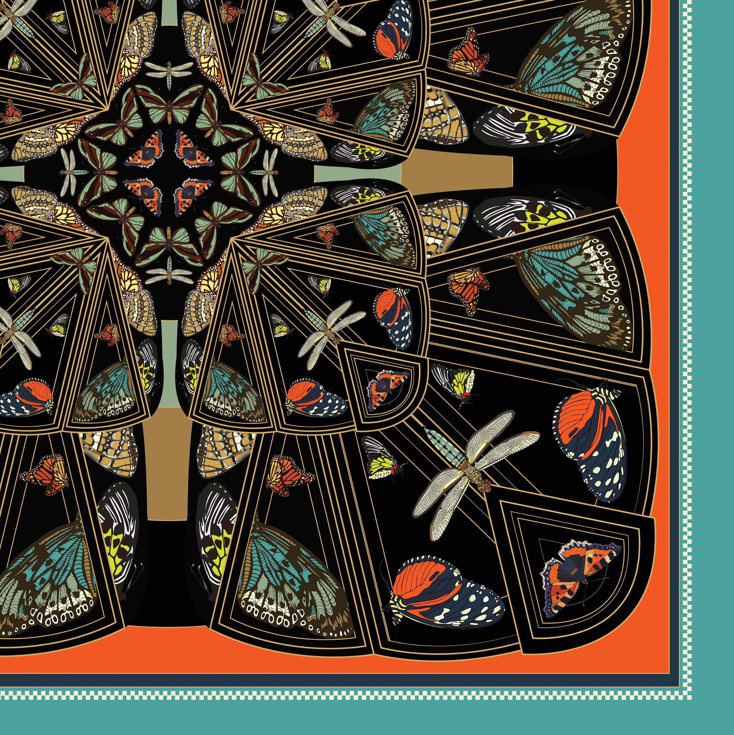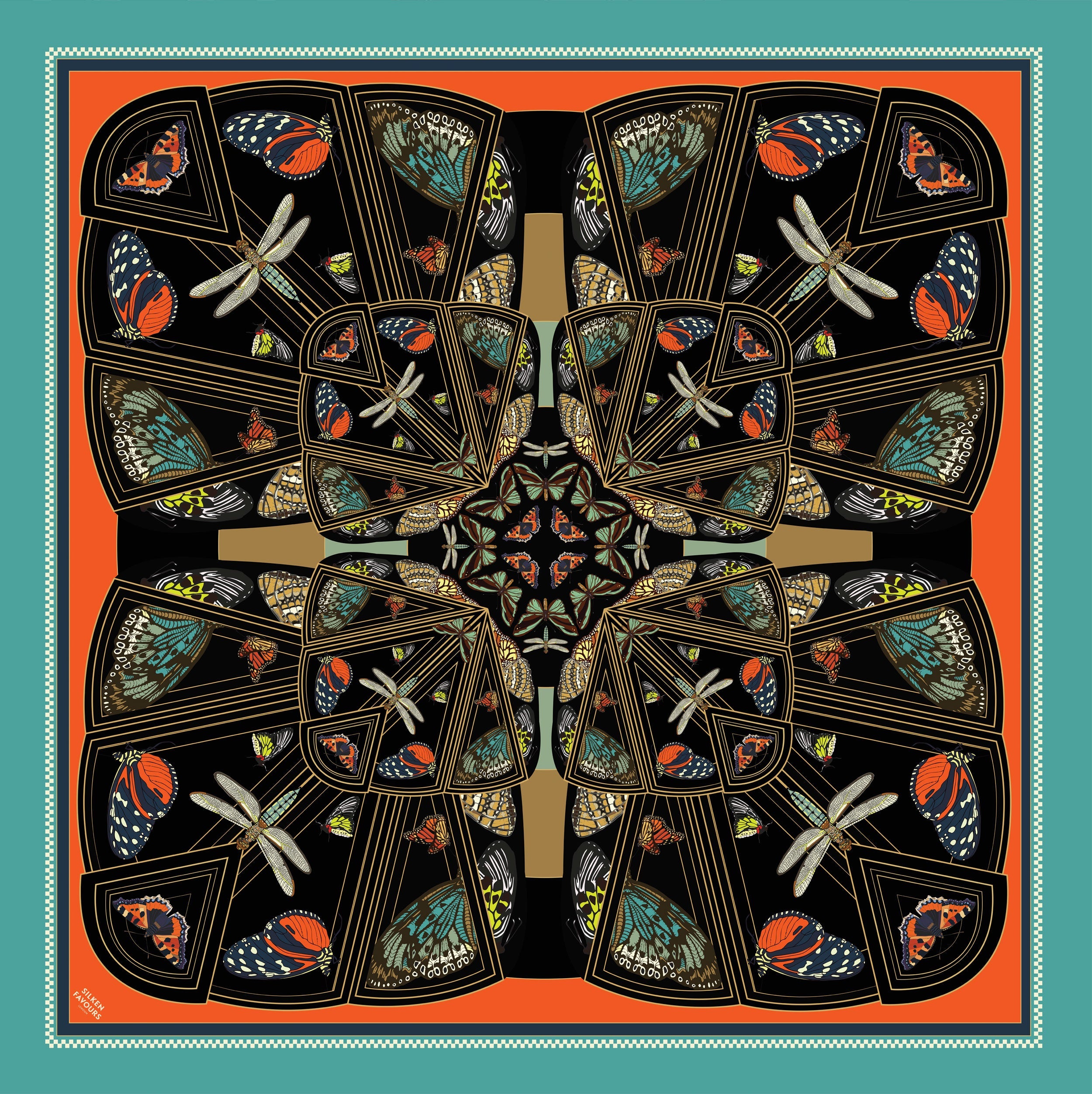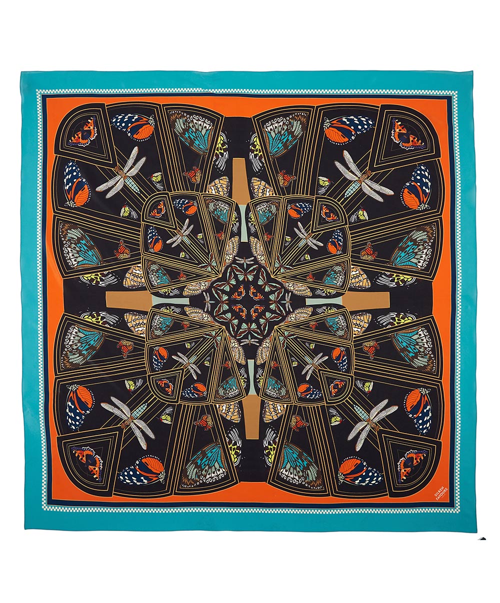 Art Deco Butterflies Silk Handkerchief - Pre Order