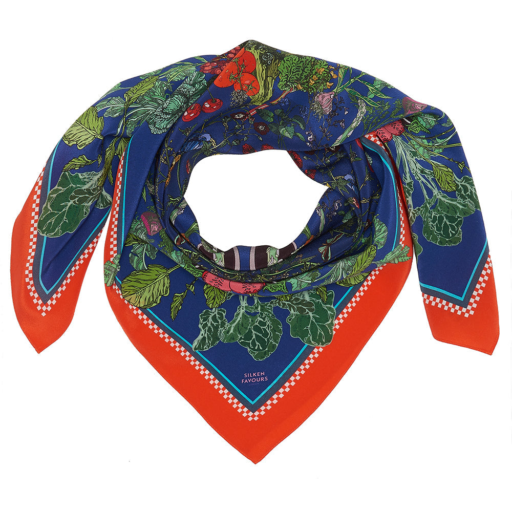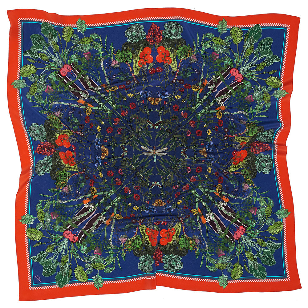 Exploding Garden Blue Silk Neckerchief 65x65cm