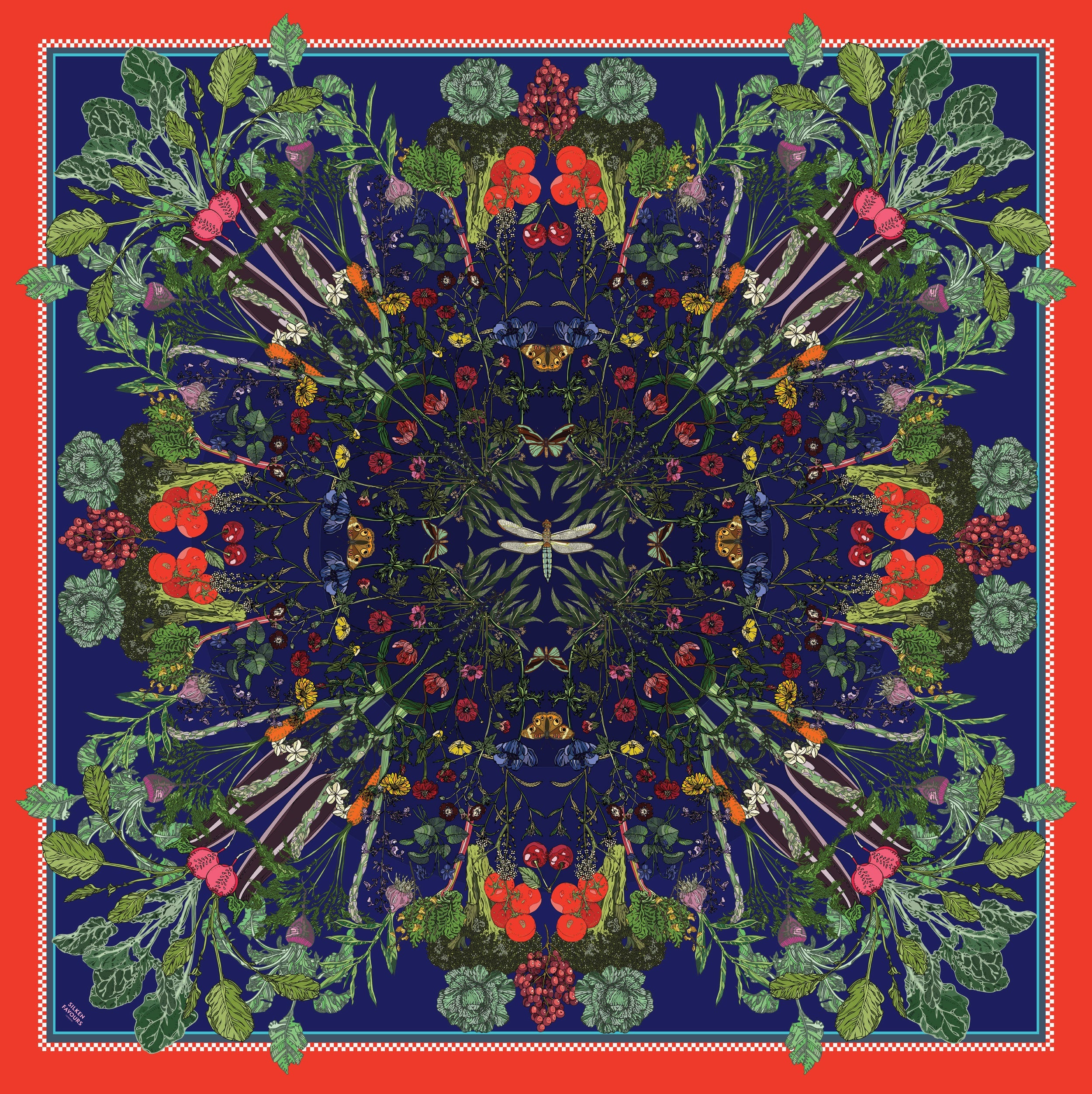 Infuse ensembles with a cheerful summer feeling in this lively silk scarf. Printed with a thriving country garden of vibrant wildlife. Drape it or tie it around the neck over a simple tee or a relaxed silk shirt for a feminine take on alternative styling.