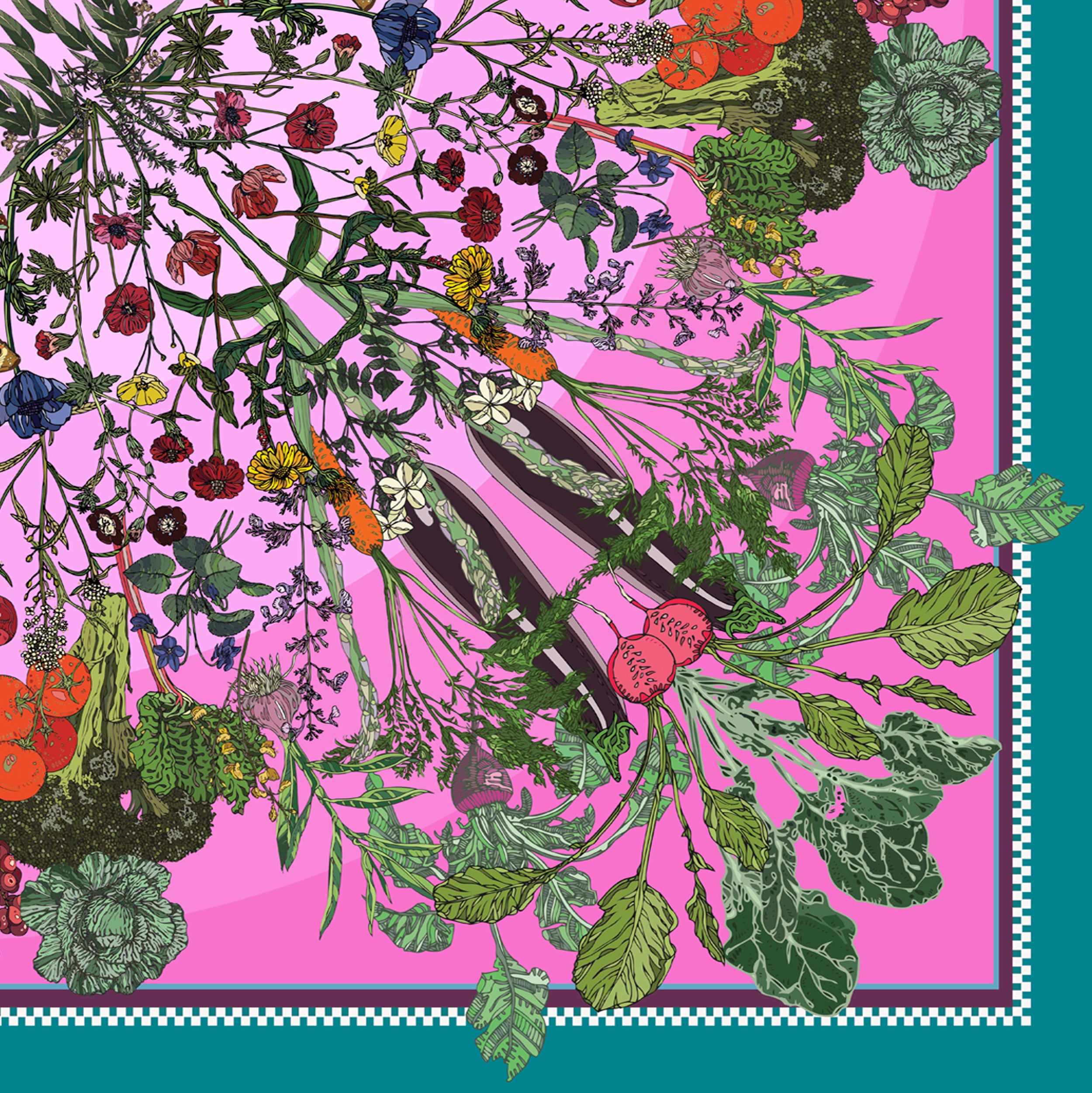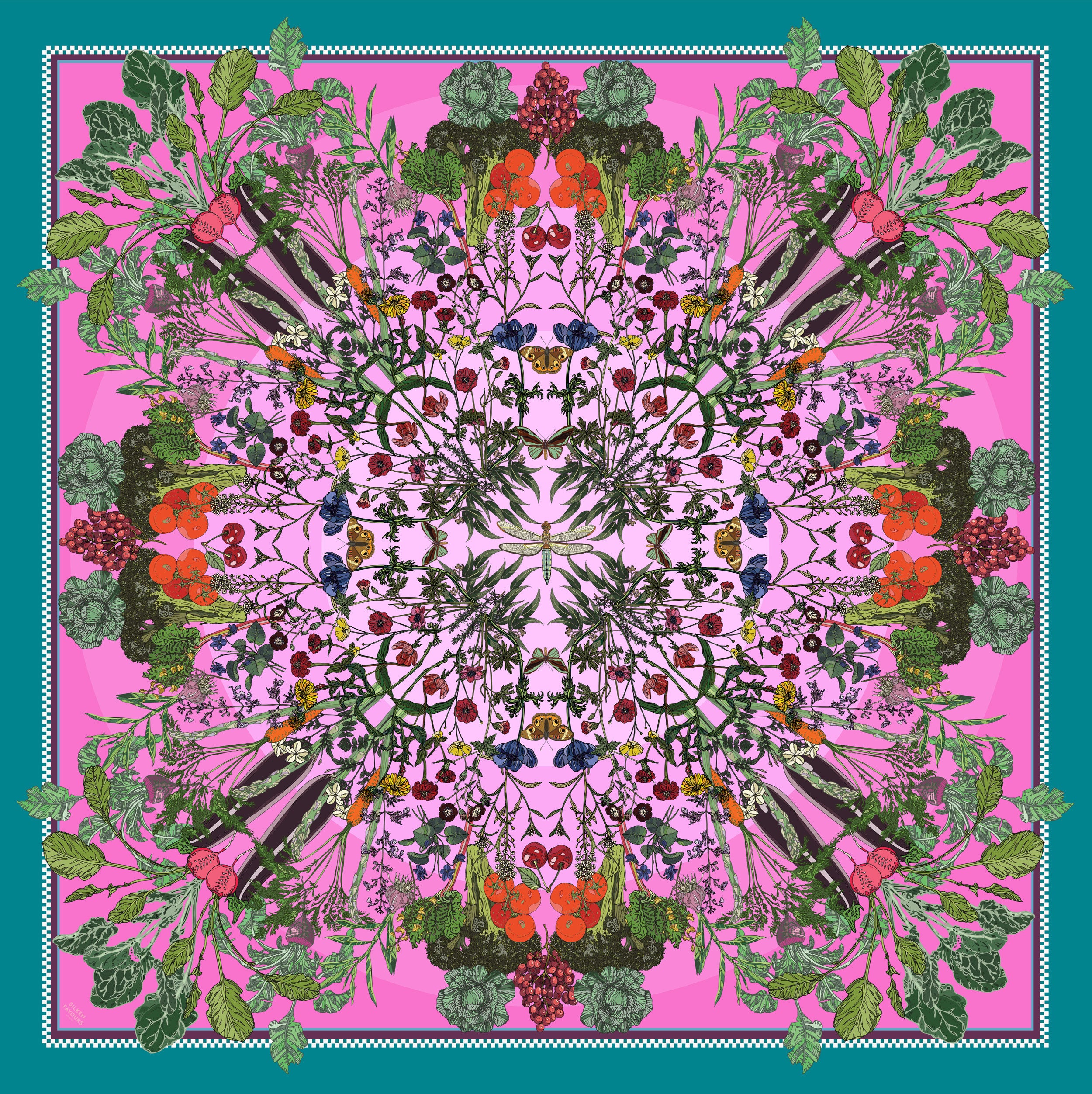 Exploding Garden Pink Silk Handkerchief 45x45cm