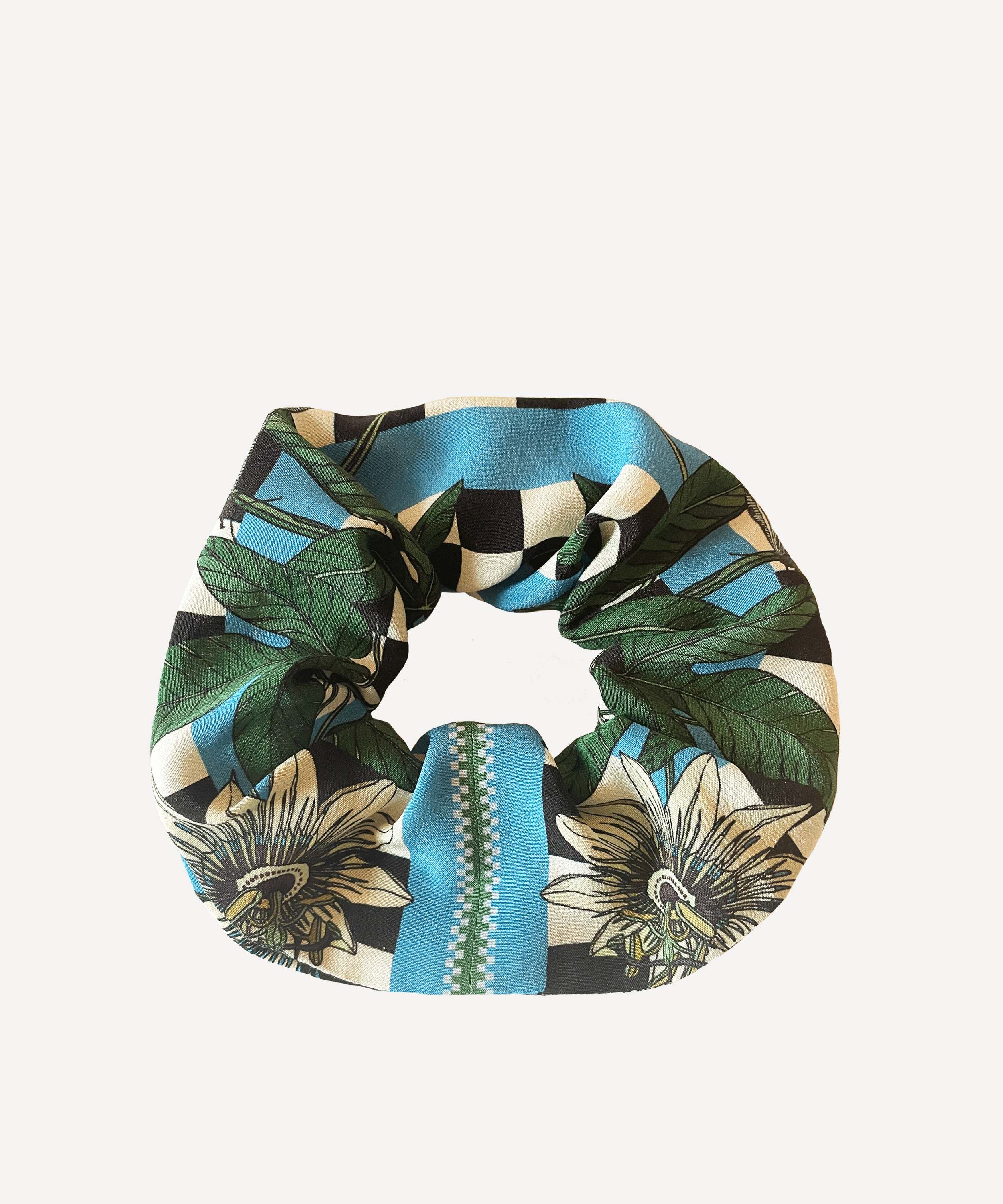 Silk Passion flower checks blue Scrunchie