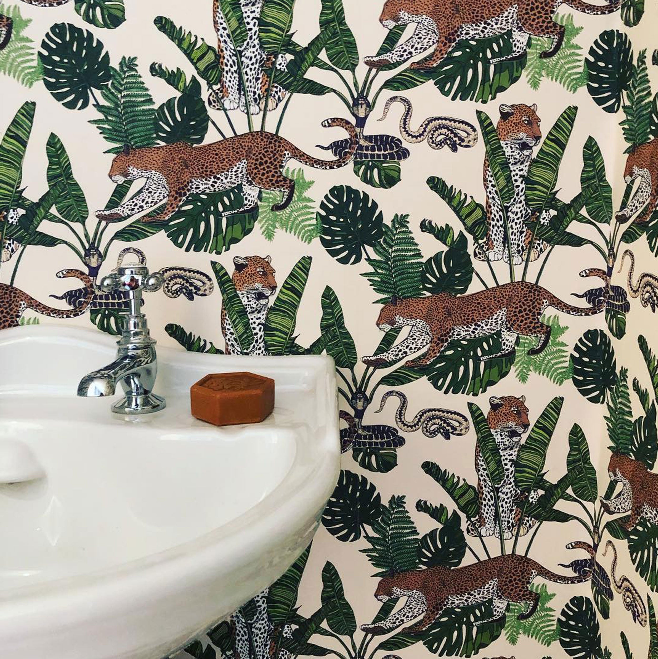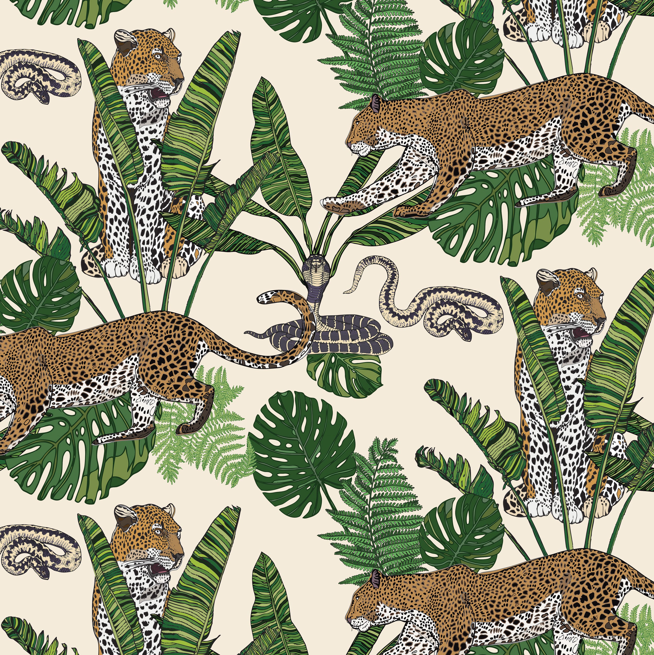 Jungle Leopard Snake Cream Wallpaper - Pre Order