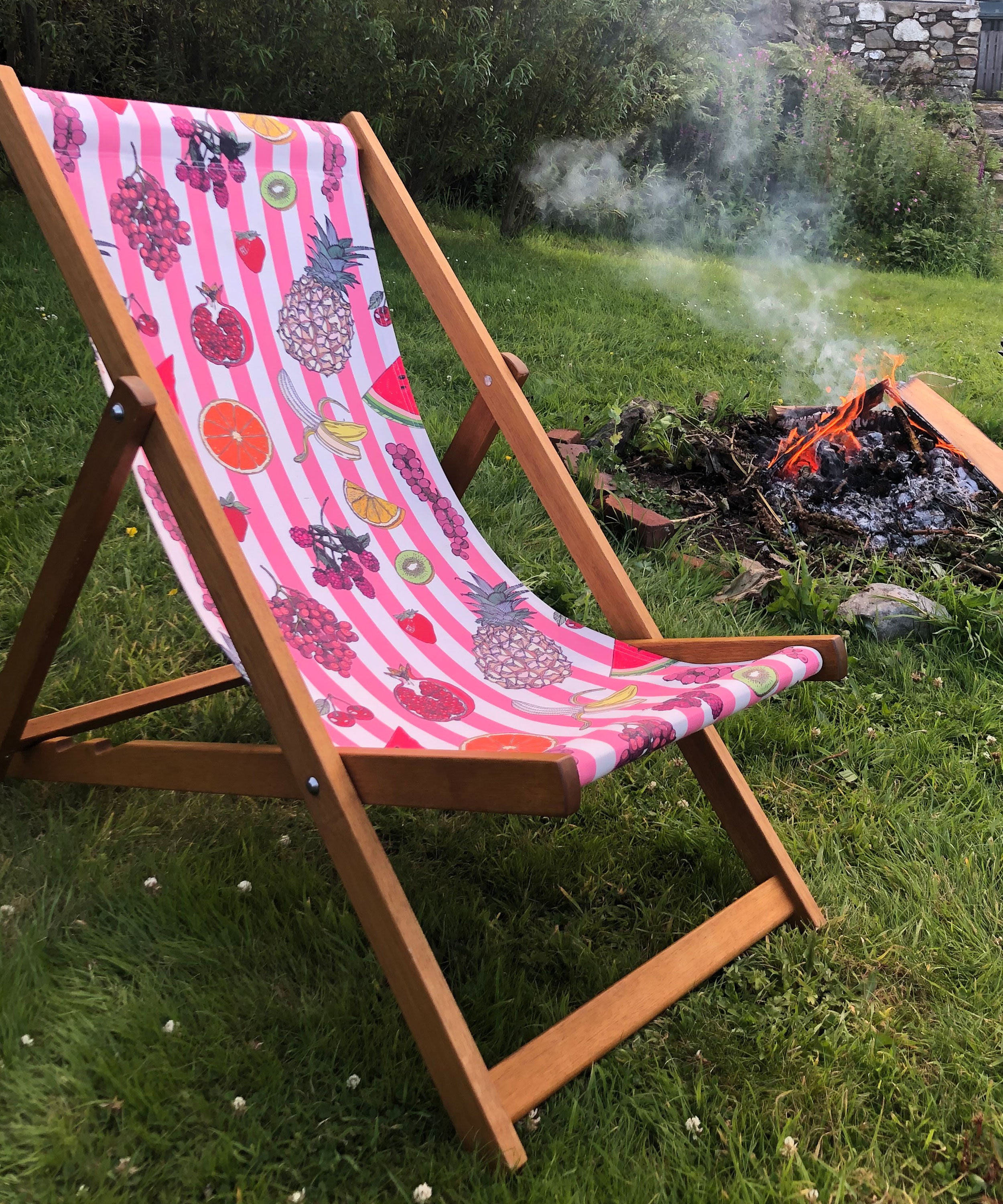A beautiful traditional deckchair with our striking natures candy print on a woven cotton hardwearing fabric.