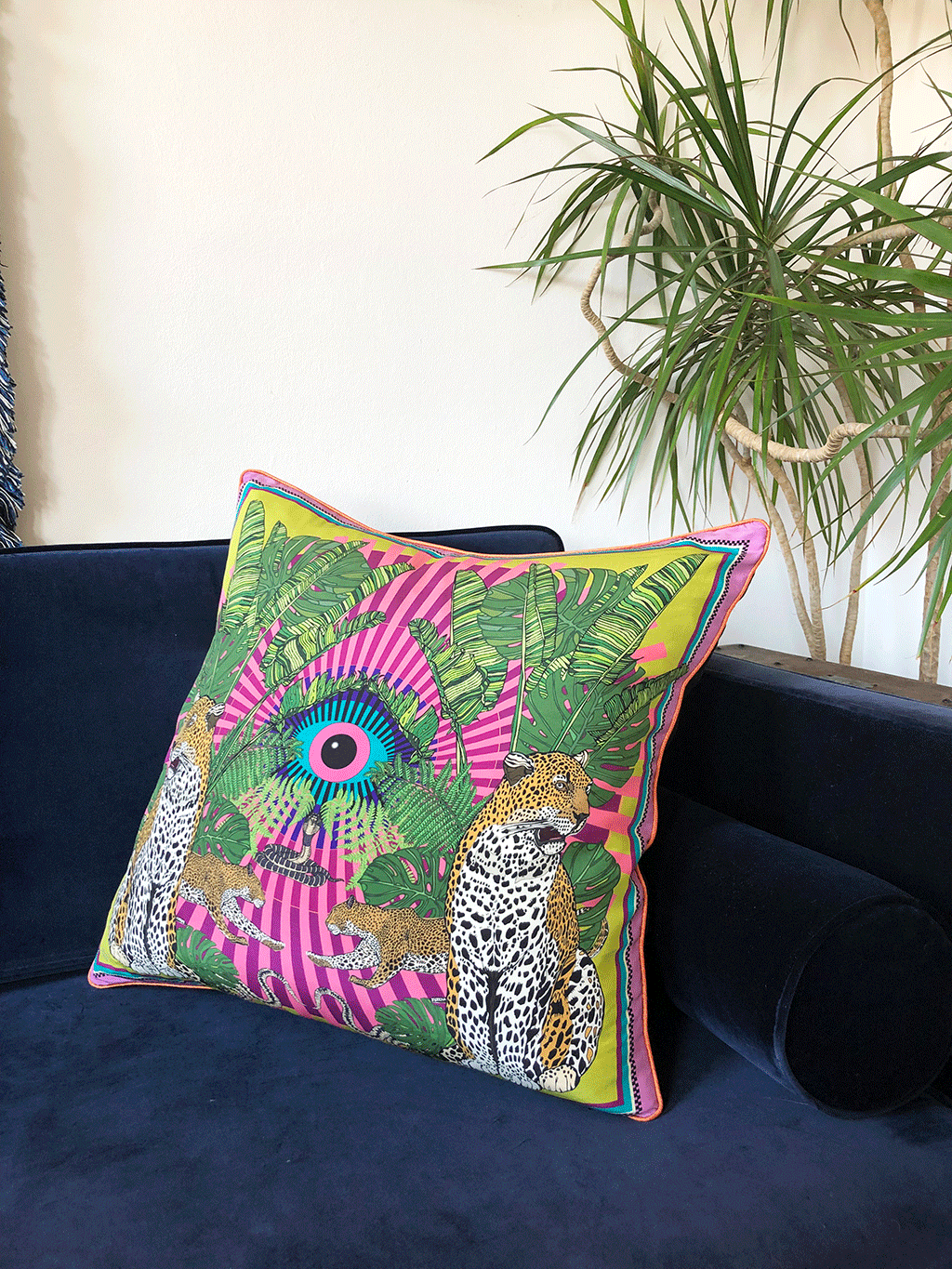 Eye Of The Leopard Pink Silk Cushion - Pre Order