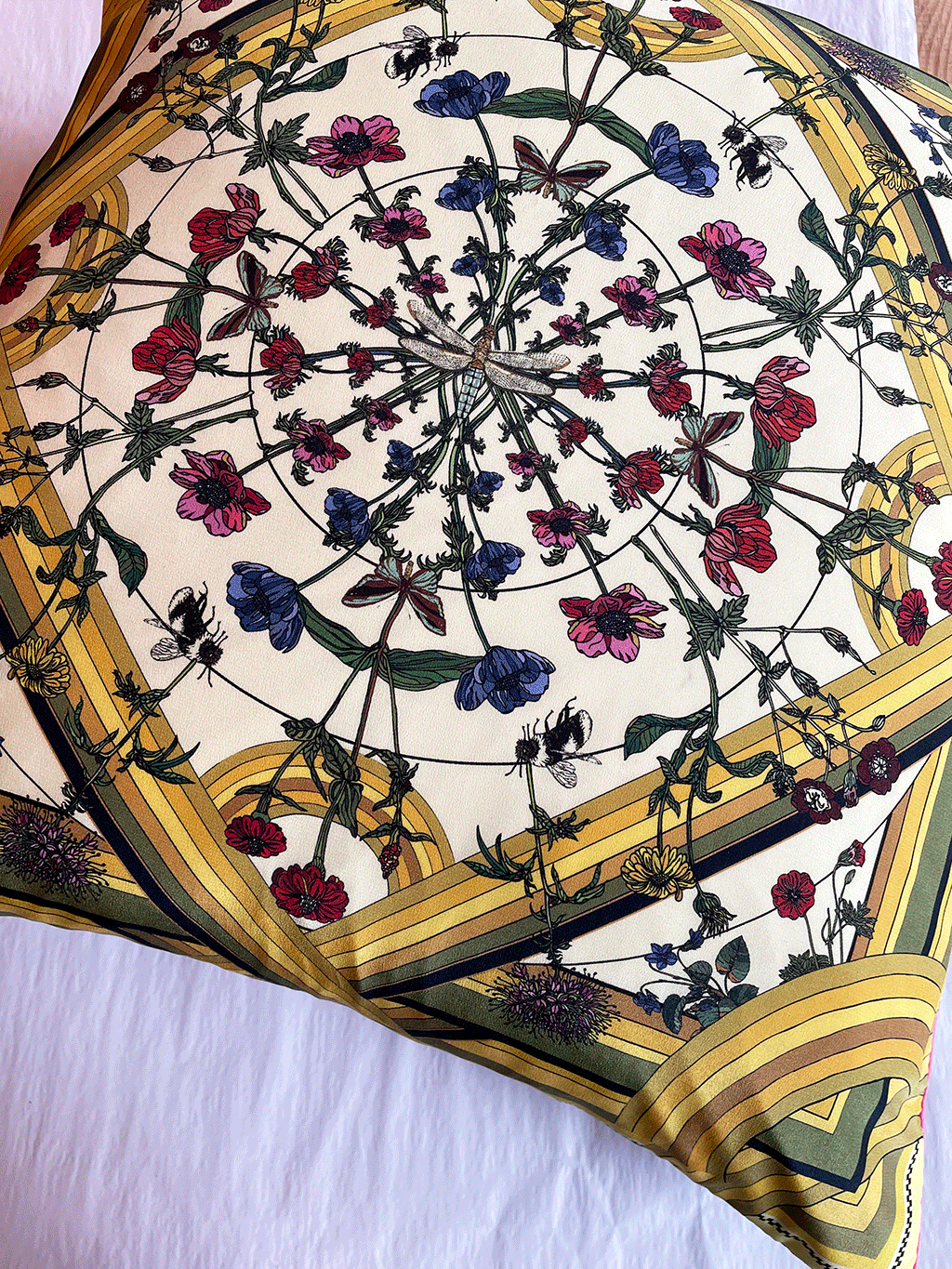 Freaky Floral Yellow Silk Cushion - Pre Order