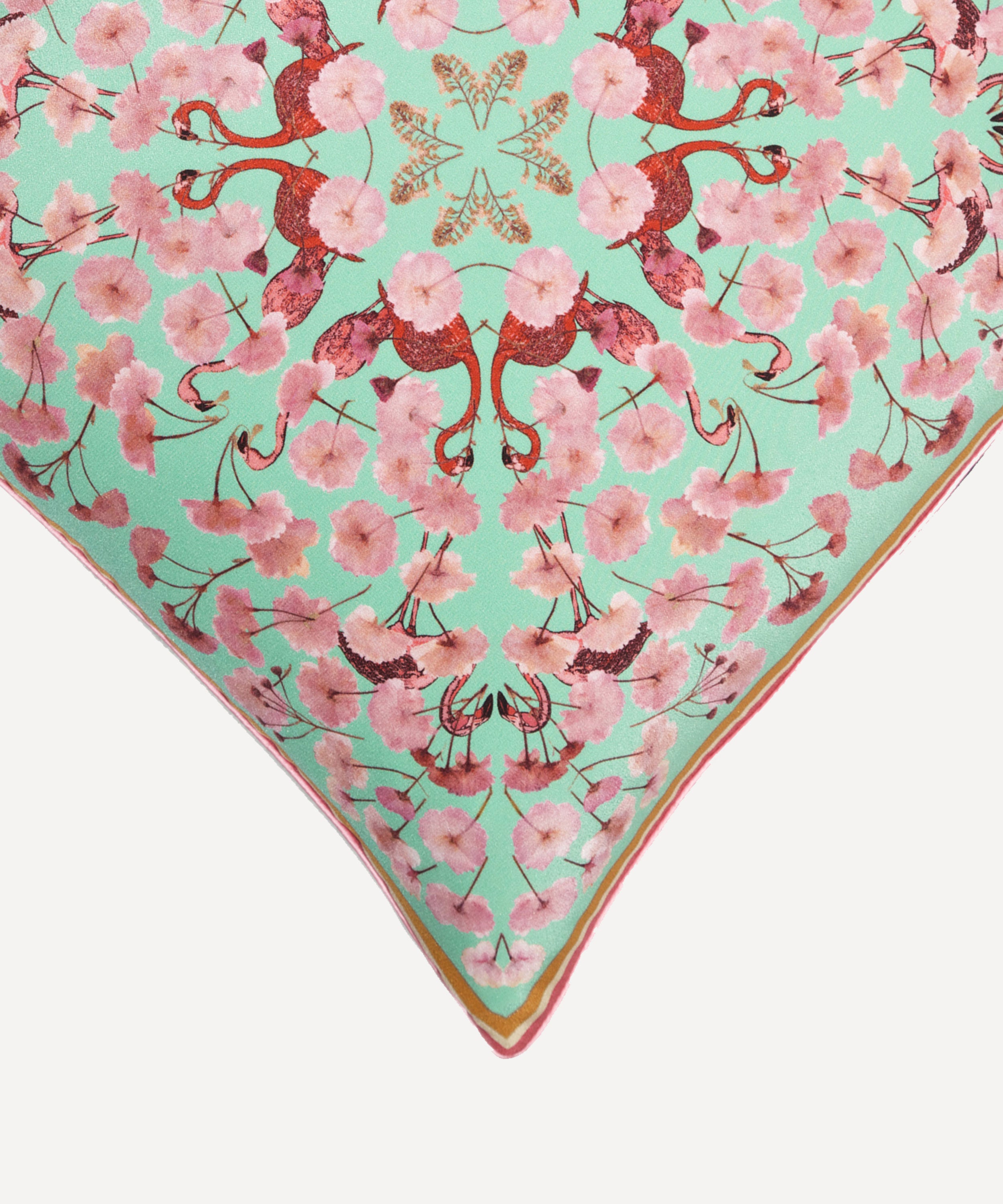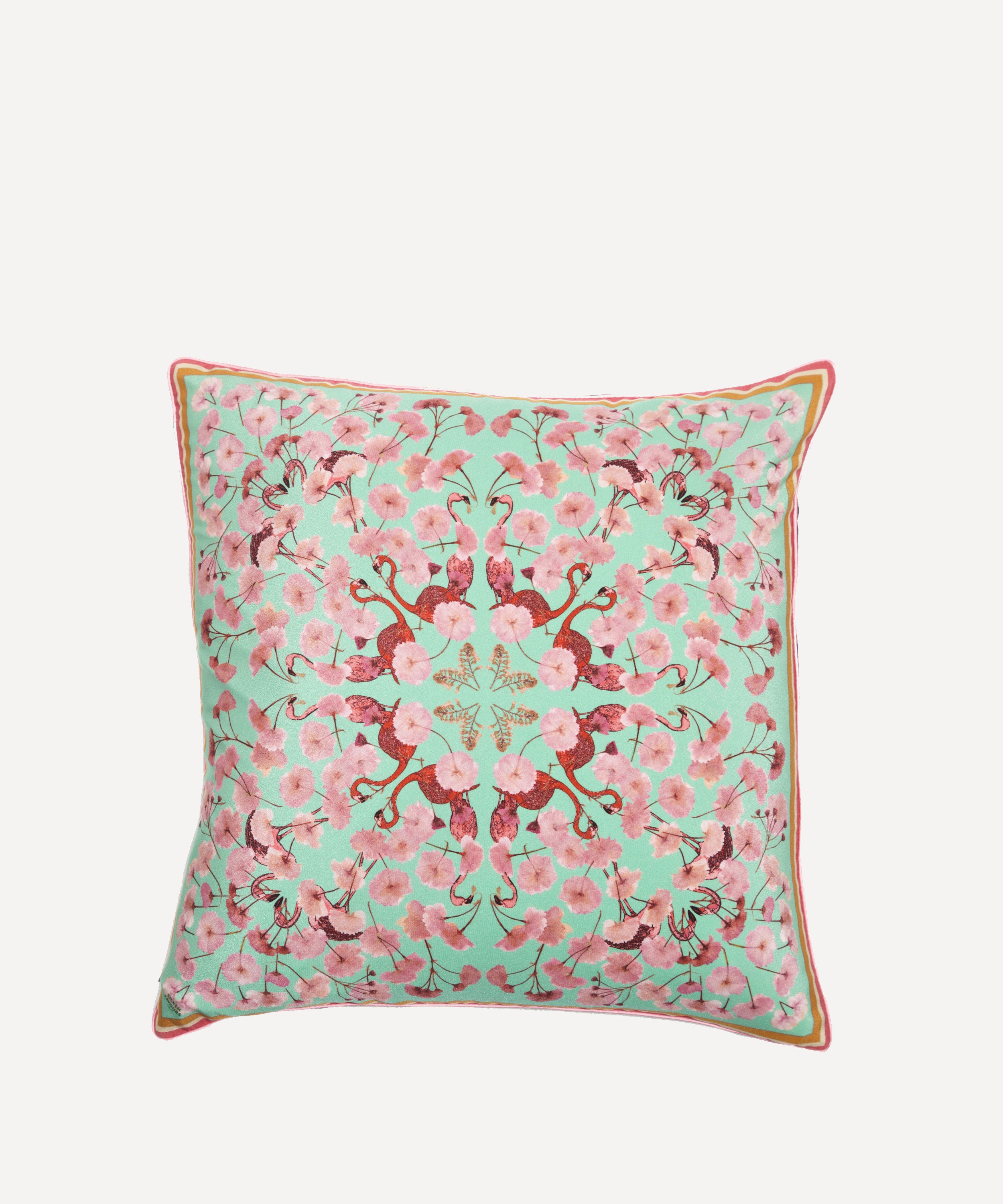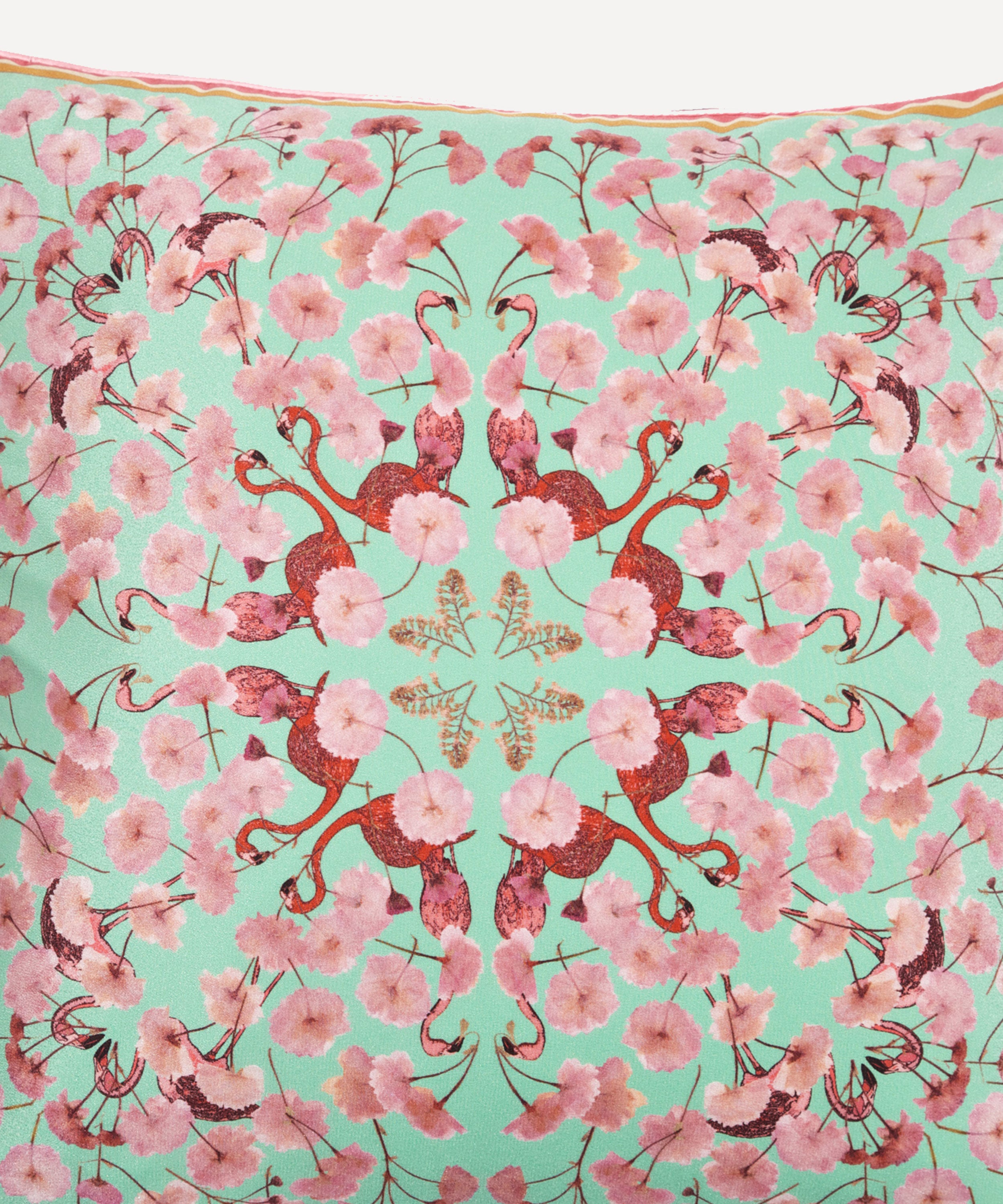 Pressed Floral Flamingo Mint Silk Cushion - Pre Order