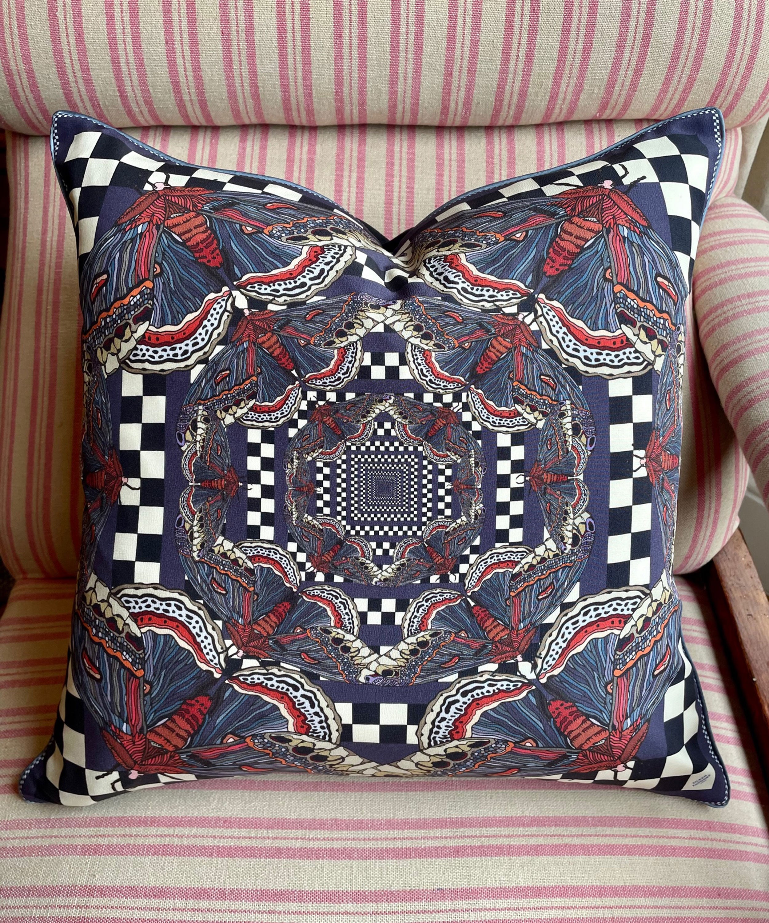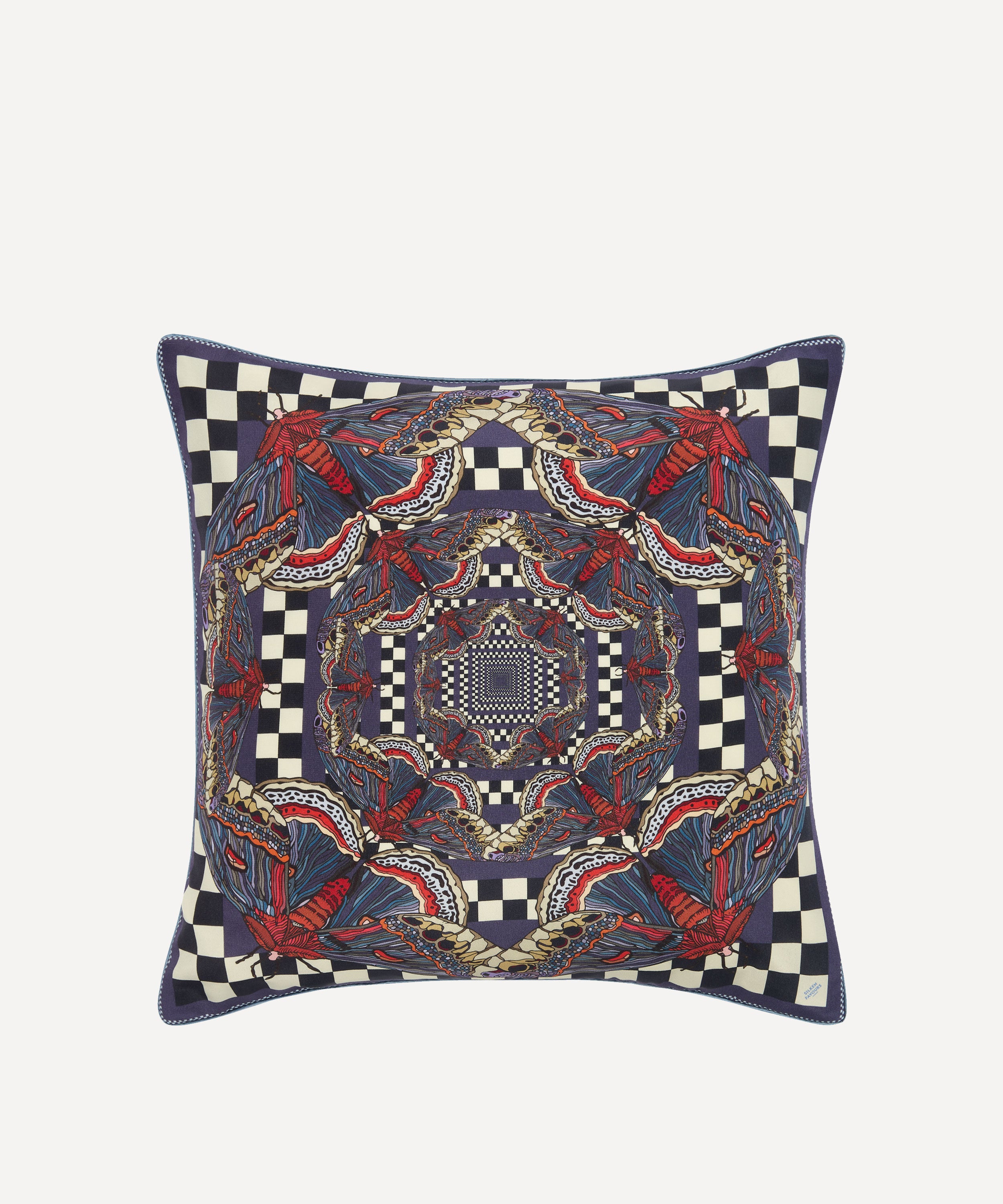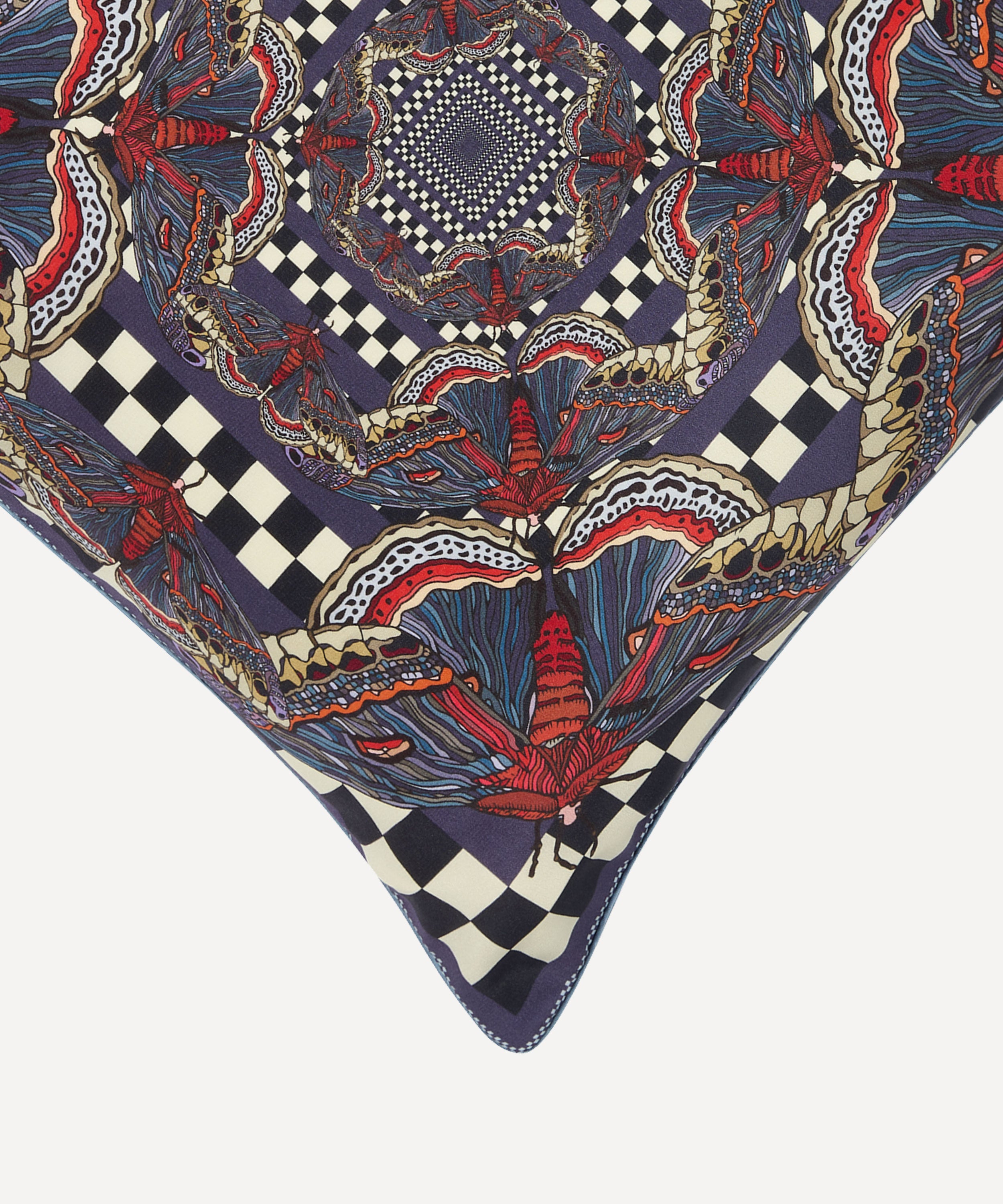 Moth Chequerboard Dark Silk Cushion - Pre Order
