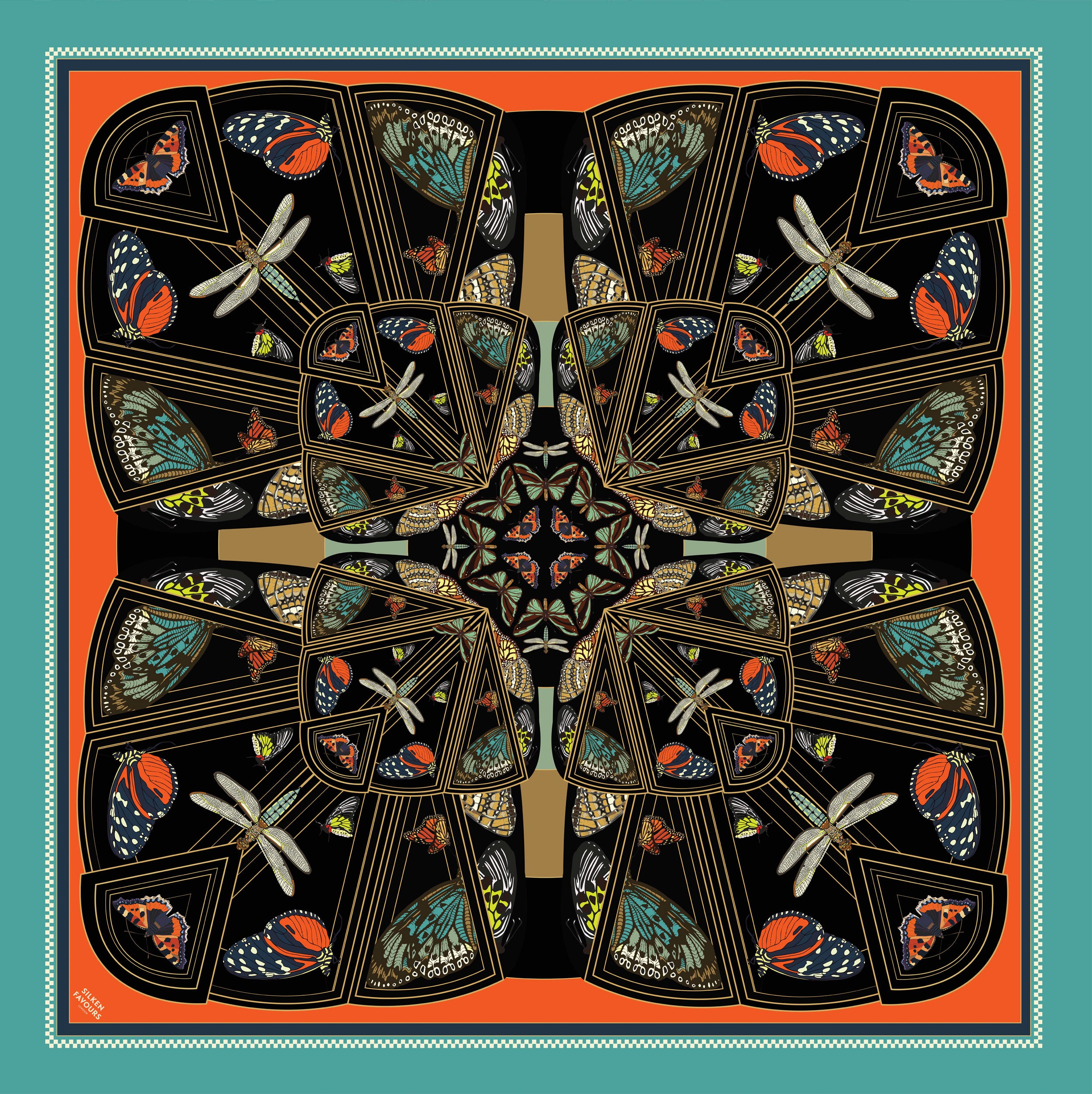 Art Deco Butterflies Silk Scarf 90x90cm