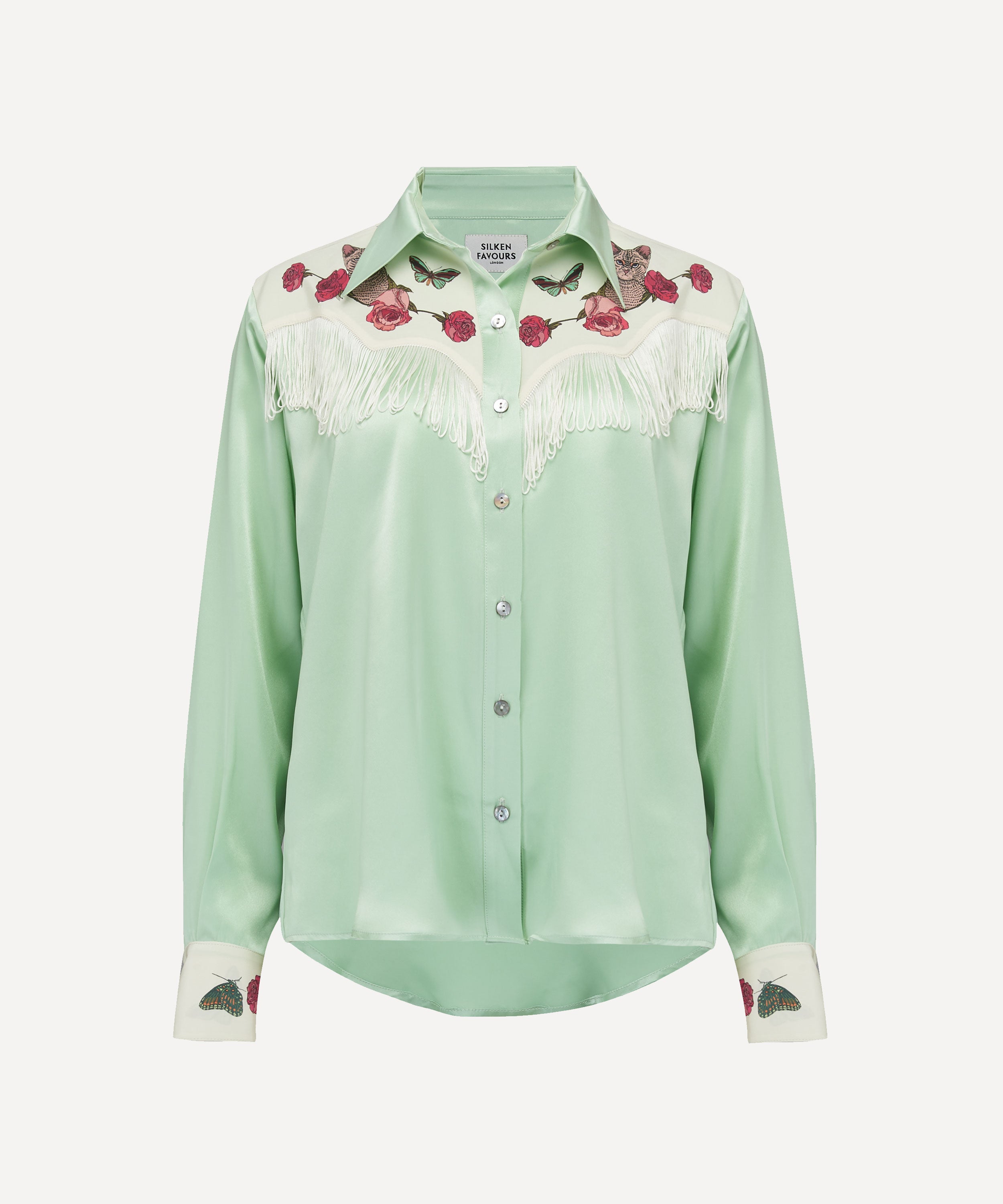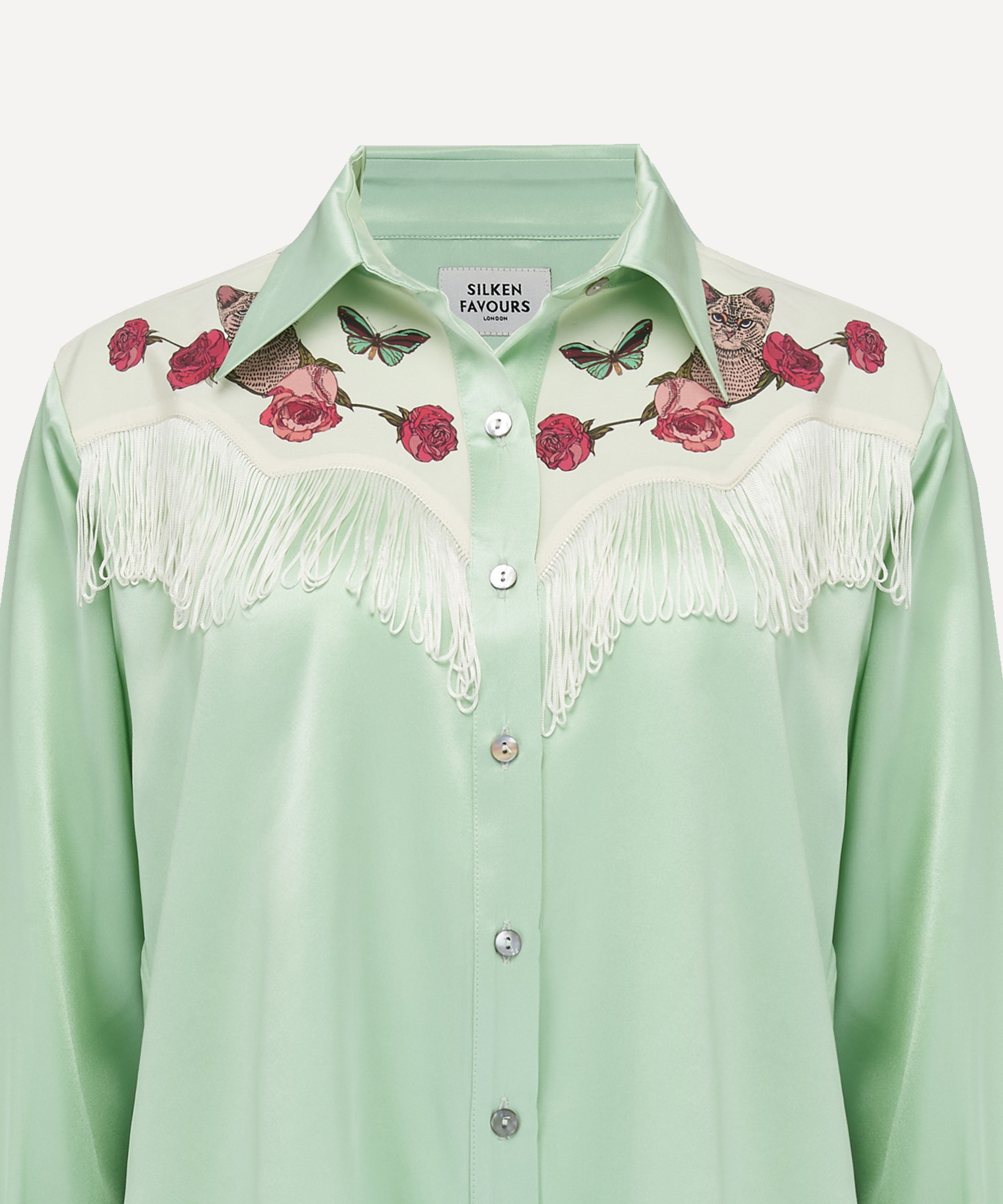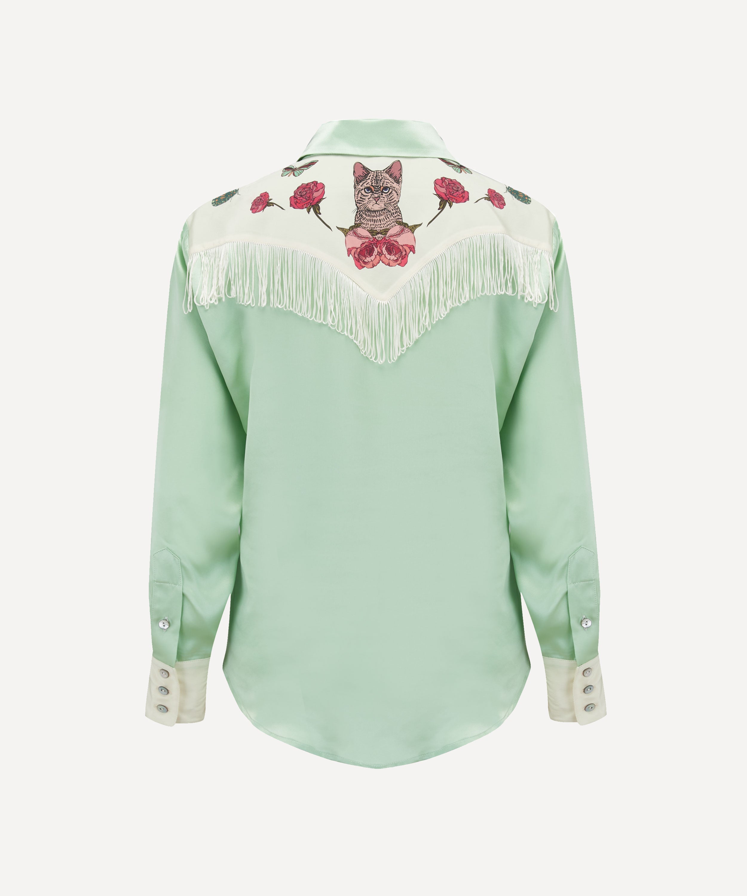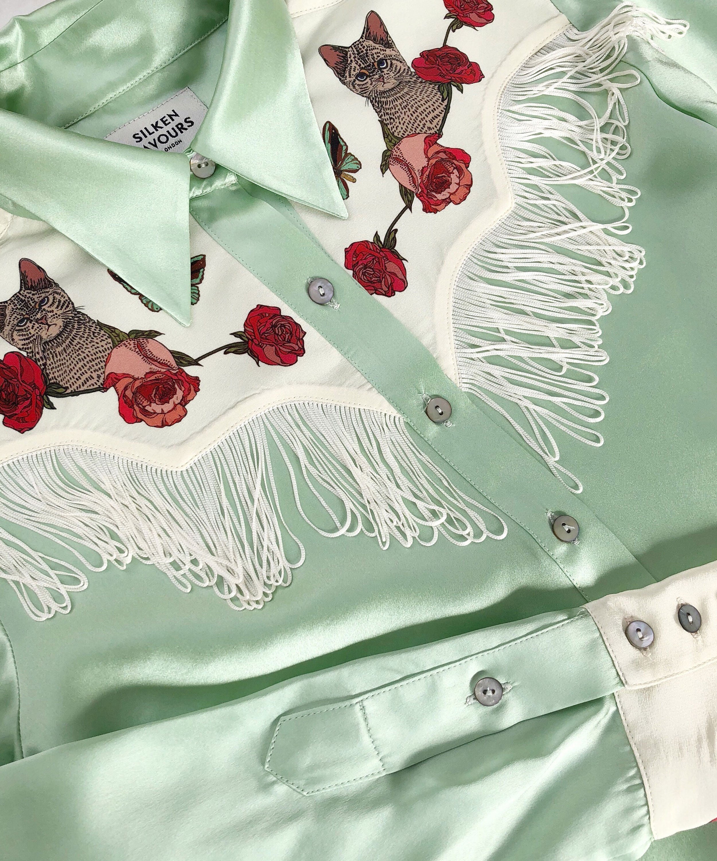 Silk Cat Cowboy Shirt of Dreams in Peppermint - Pre order