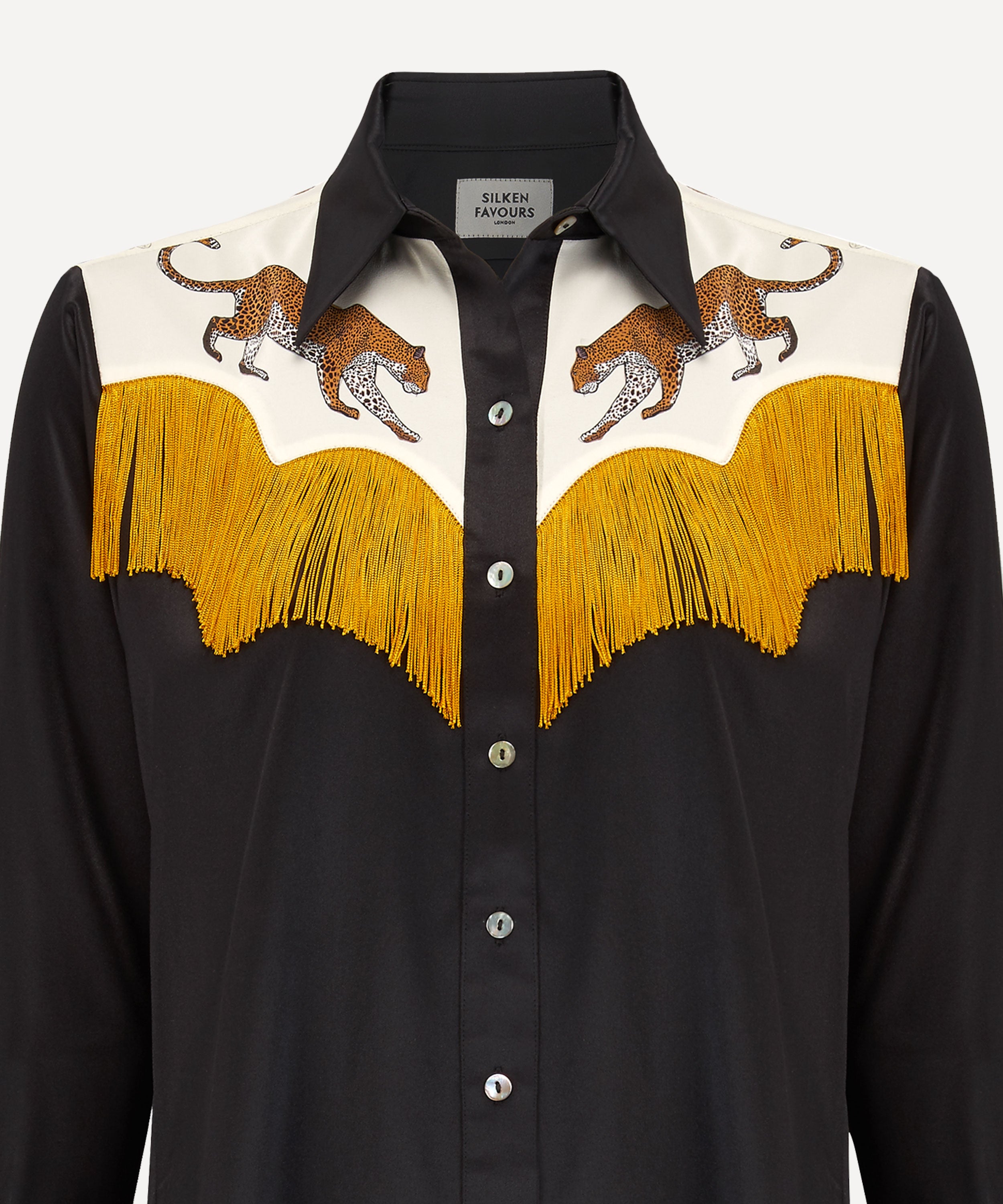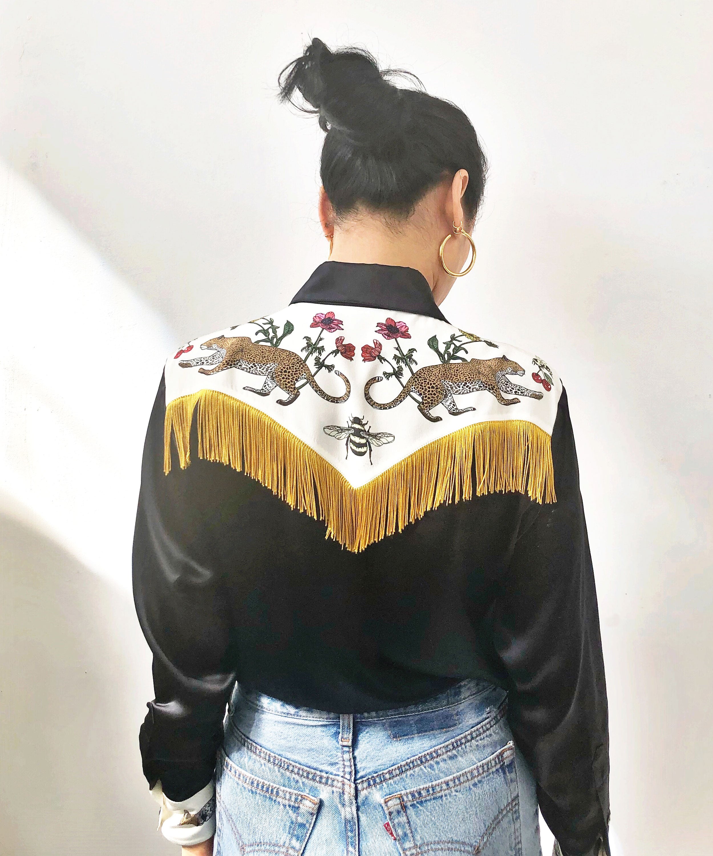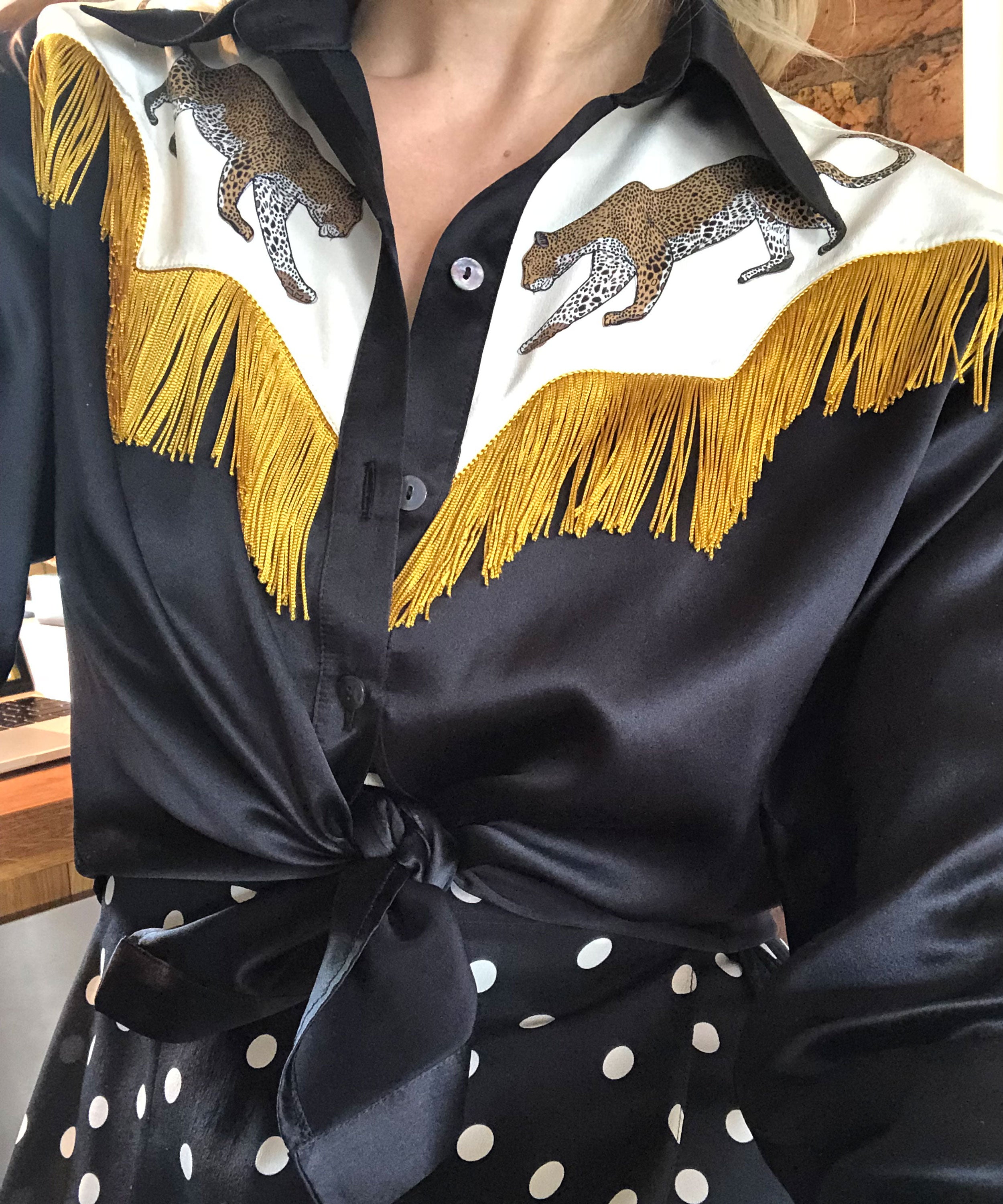 Black Leopard cowboy silk shirt of dreams with fringing - Pre order