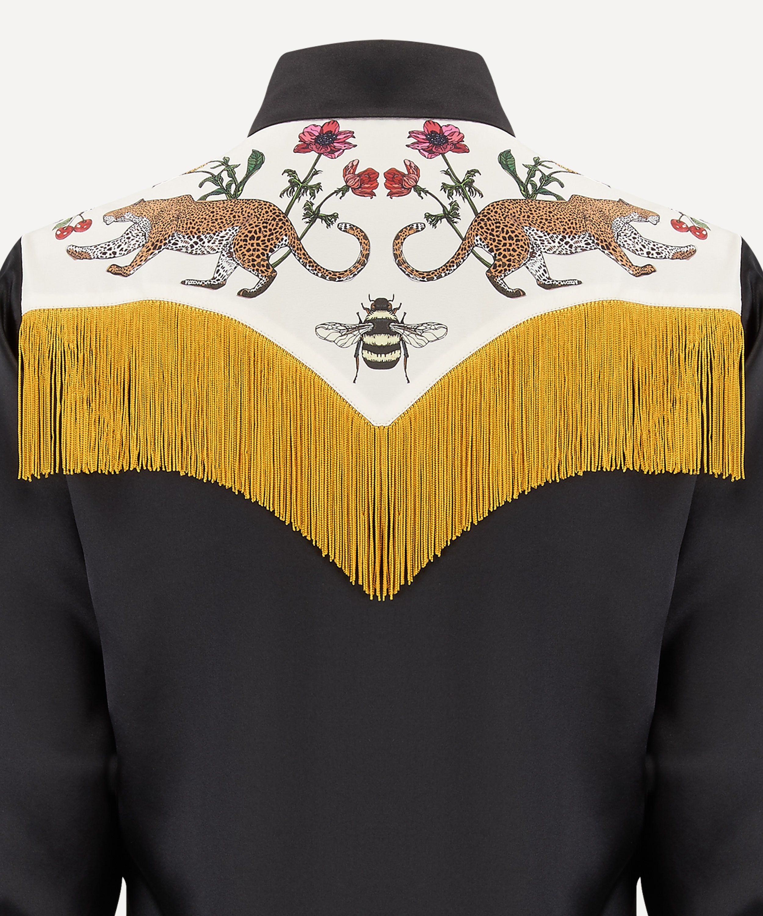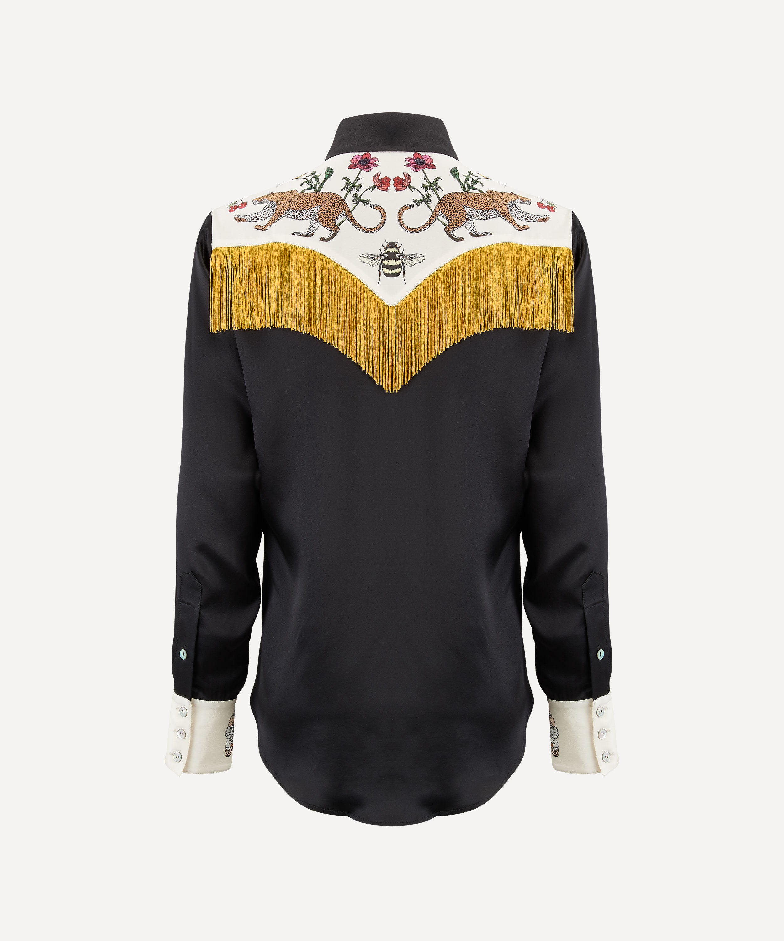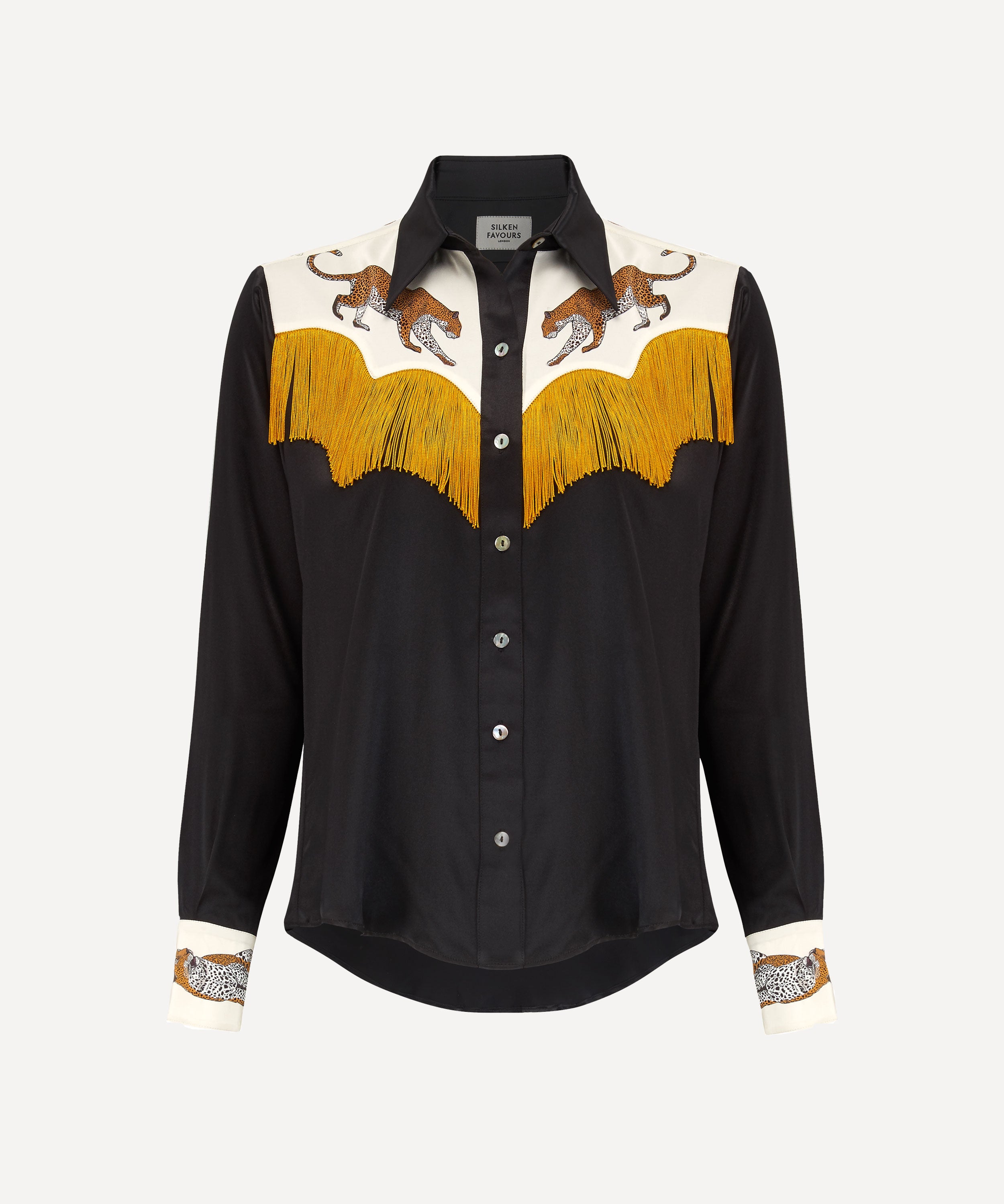 Black Leopard cowboy silk shirt of dreams with fringing - Pre order